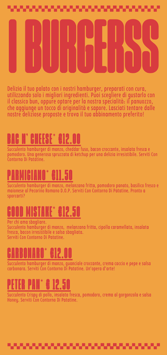 Sbagliata Pavia - Pizzeria, Burgeria e Braceria Menu